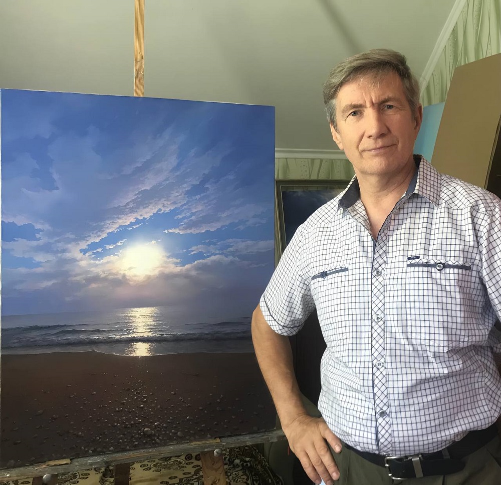Художник — самоучка: учился у местных мастеров, копировал Айвазовского, писал по воображению и постепенно вырабатывал собственный почерк. Придерживаясь традиций реализма, он продолжает поиски своего стиля, оставаясь верным теме моря, его силы и красоты.