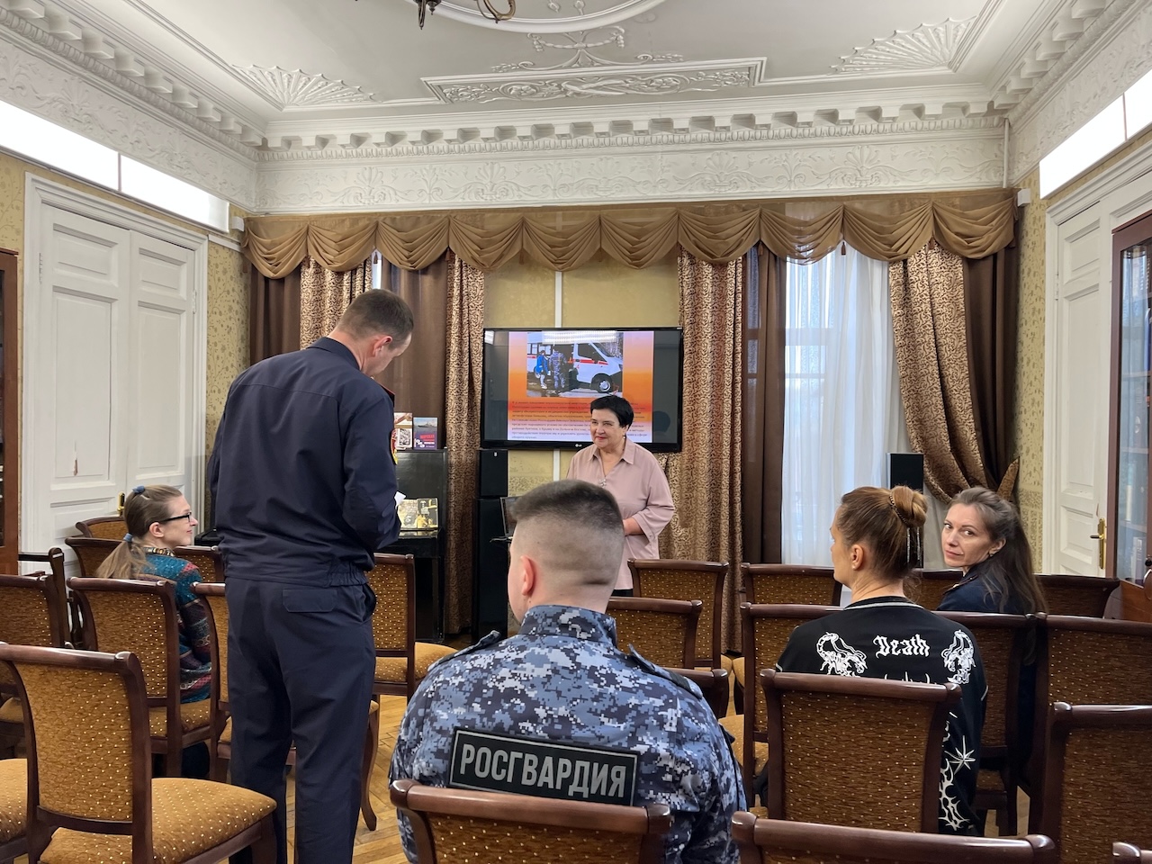 Участниками программы стали читатели библиотеки и офицеры отряда Госгвардии, которые охраняют главный музей Санкт-Петербурга — Эрмитаж.