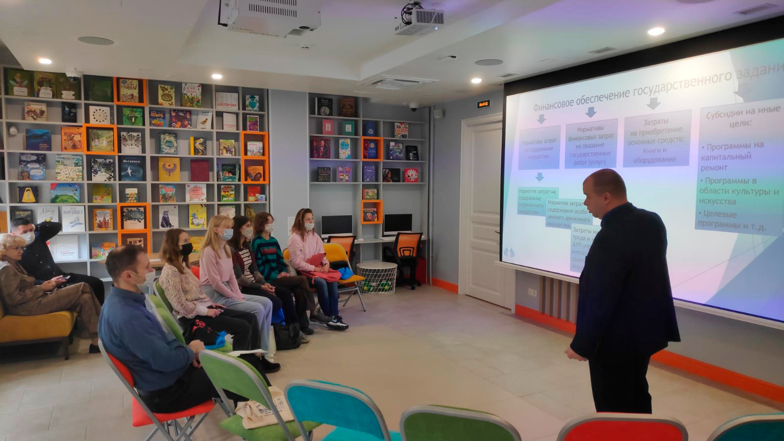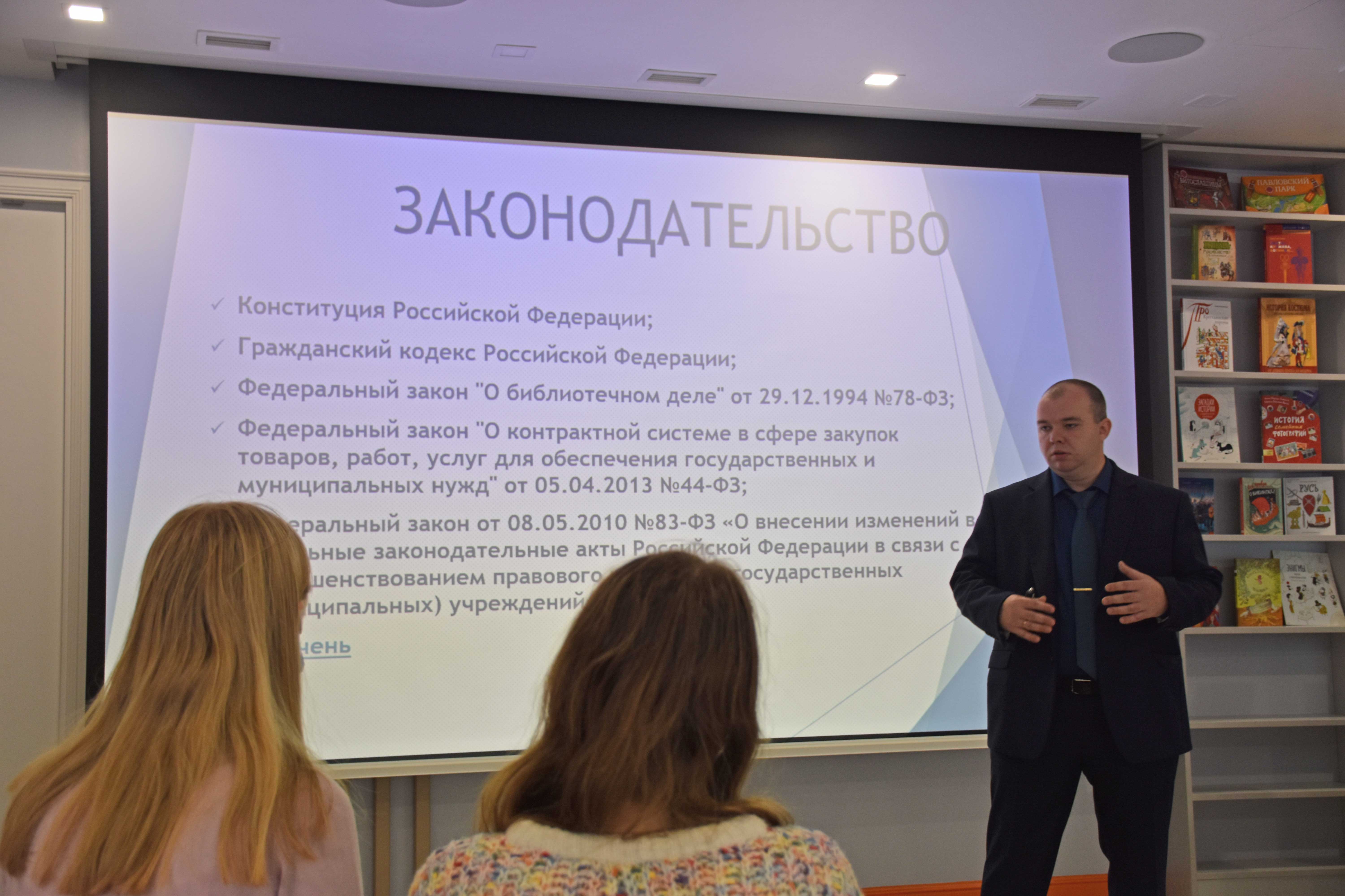 После экскурсии по библиотеке студентов ждала лекция «Закупки товаров, работ и услуг в библиотеке», которую подготовил Константин Викторович Кашпур, заместитель директора по административно-хозяйственной деятельности. В живой беседе ребята смогли задать практические вопросы о данной теме.