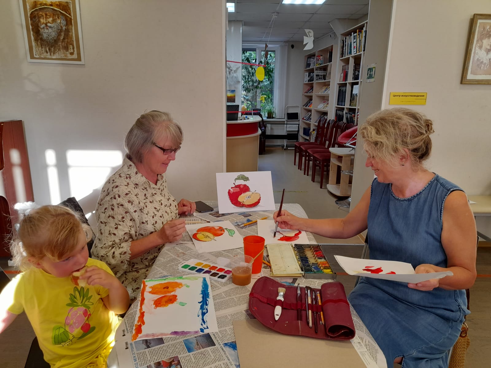 18 августа в преддверии Яблочного спаса в библиотеке Кировских островов состоялся художественный мастер-класс в технике акварельной живописи.