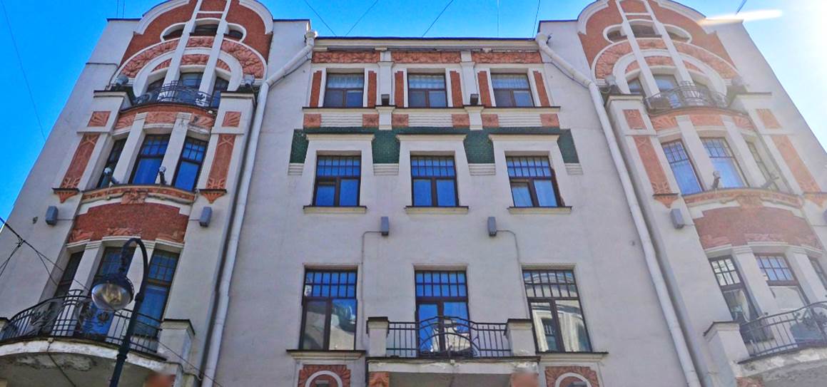 Пятиэтажный дом в стиле модерн с угловой башней и мансардным этажом на углу Большого проспекта и Ординарной улицы является одной из архитектурных доминант Петроградской стороны.