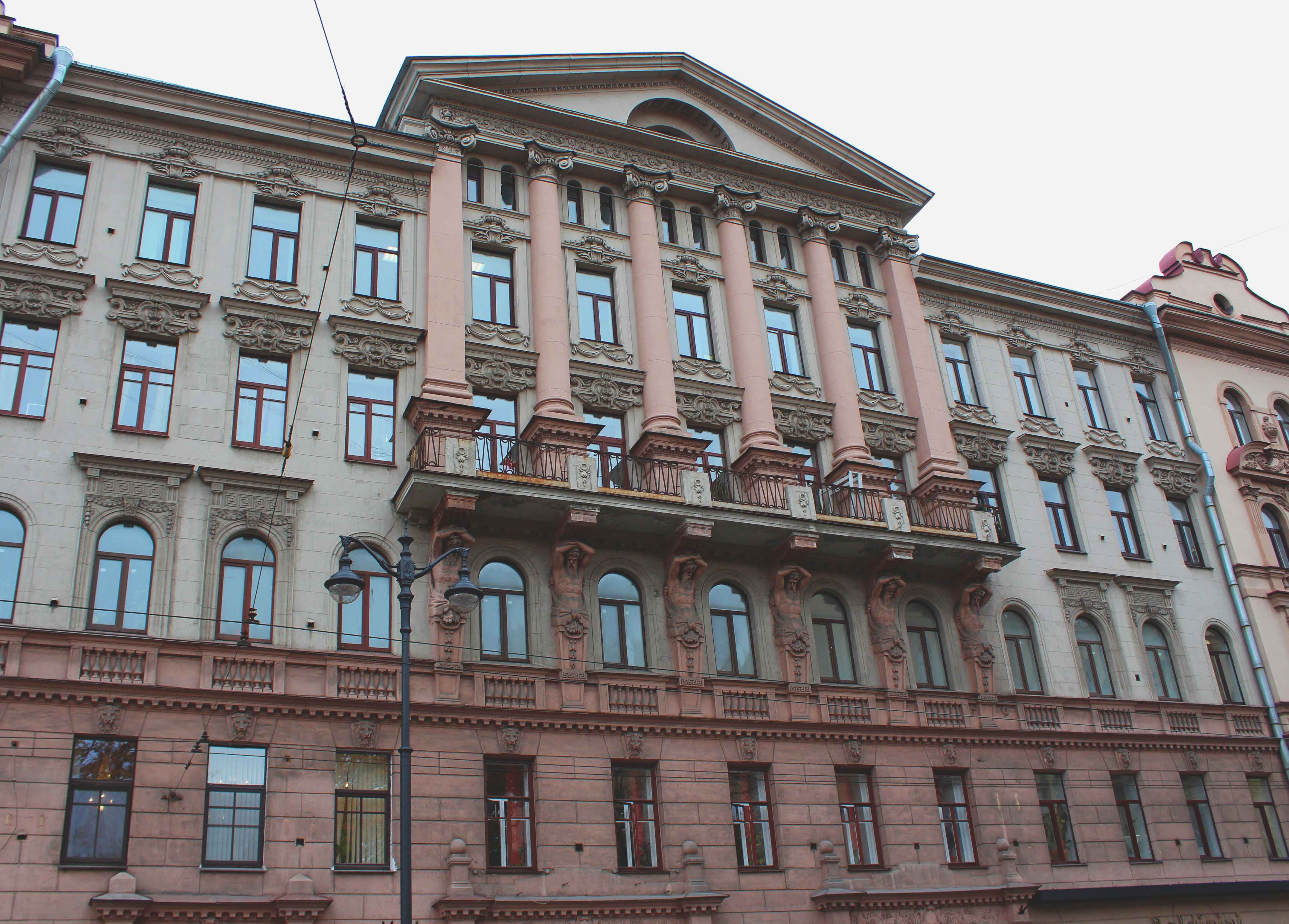 Здание, в котором располагается библиотека, является памятником истории, культуры и архитектуры. Доходный дом, построенный по проекту техника-строителя Павла Мульханова в 1913 году в стиле неоклассики, принадлежал Федору и Николаю Колобовым, купцам и благотворителям, внесшим большой вклад в развитие архитектурного убранства Петроградского района.